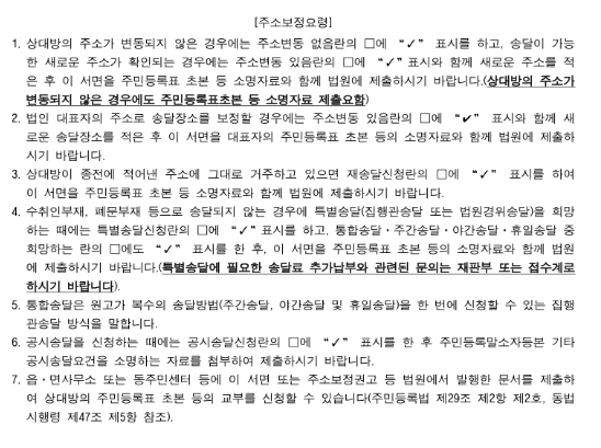 송달가능한 새로운 주소가 있다면 주소변동 있음란에 체크,