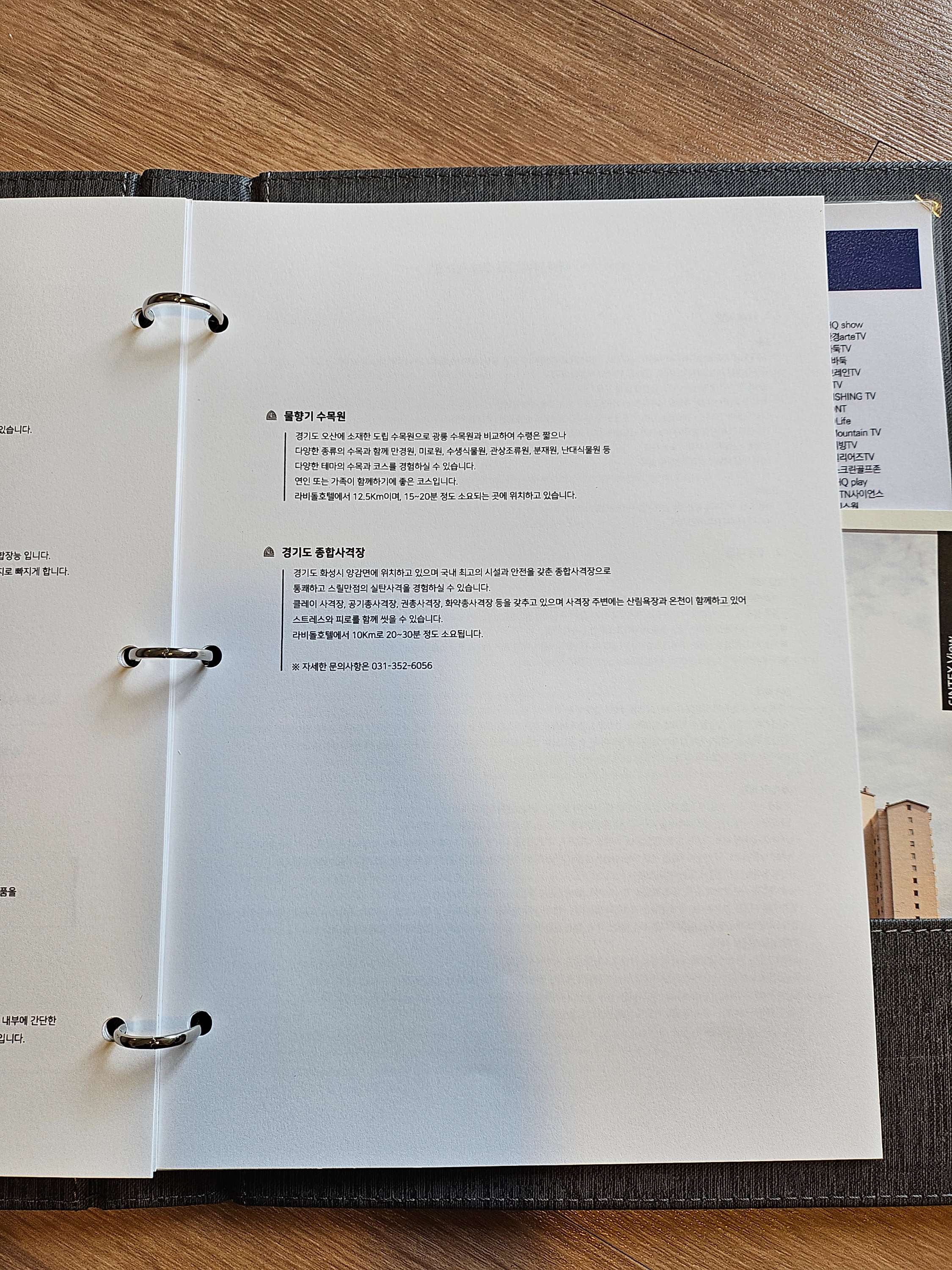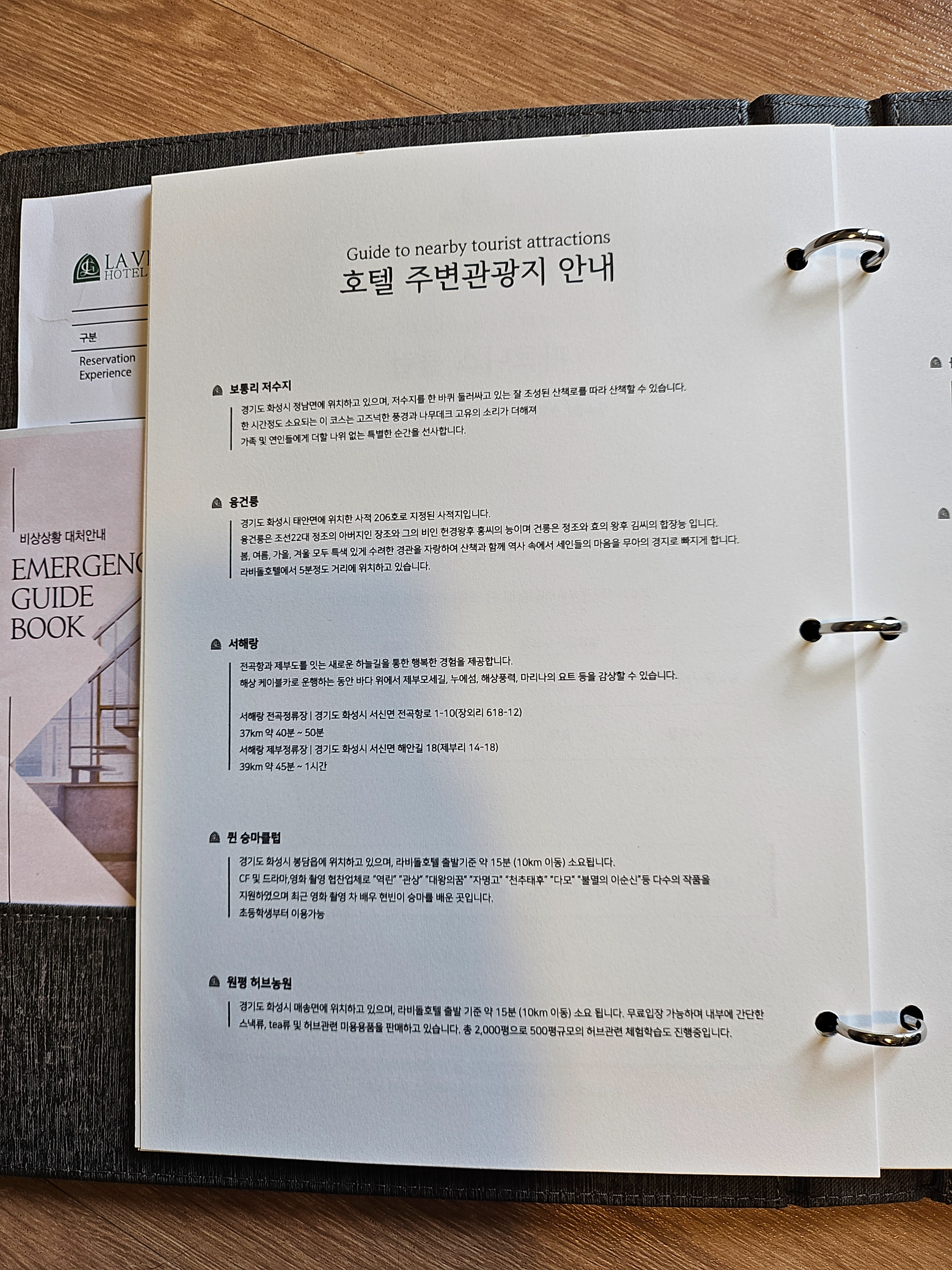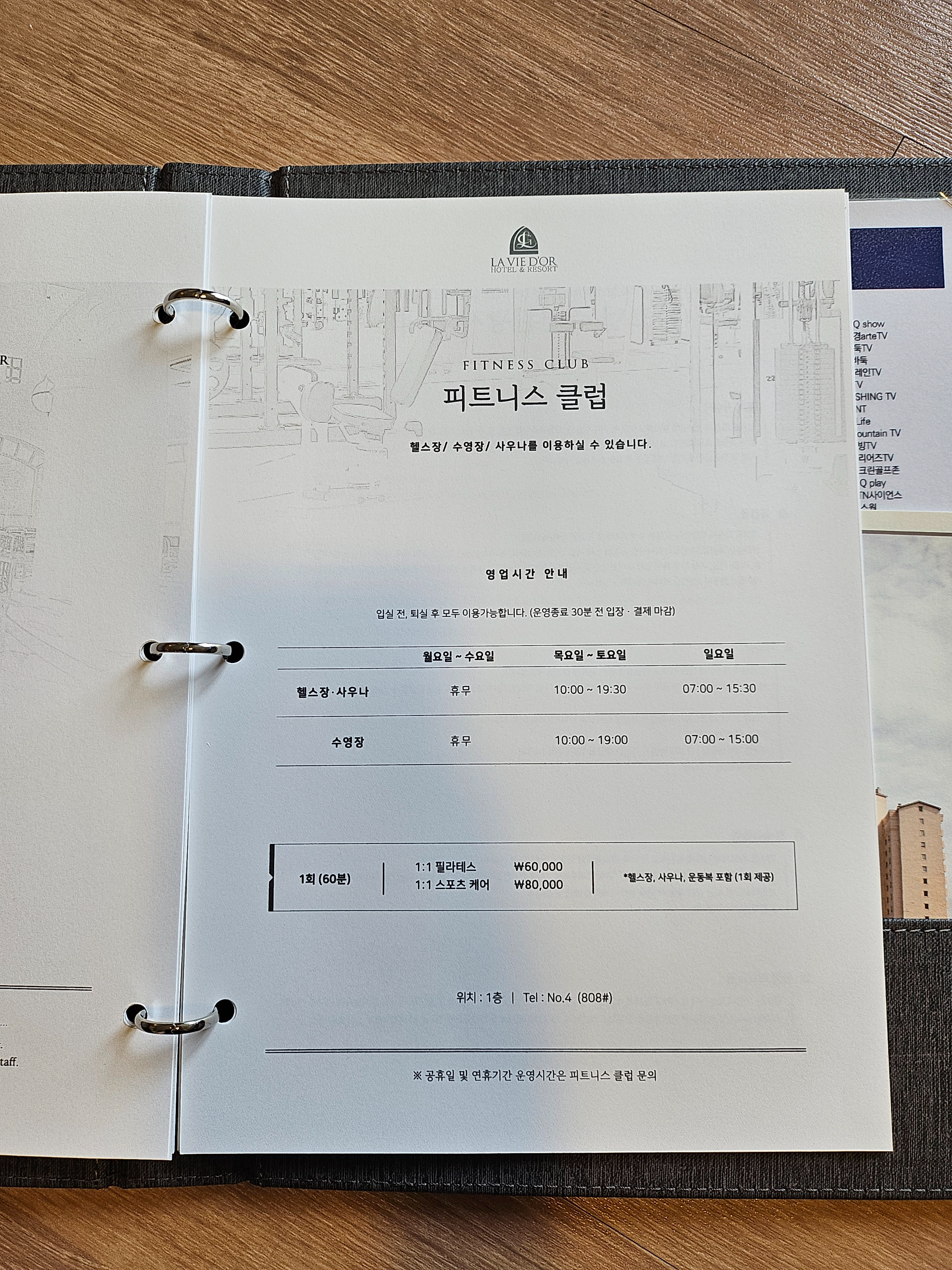 호텔의 이용사항과 부대시설 이용안내등이 적혀 있으니
