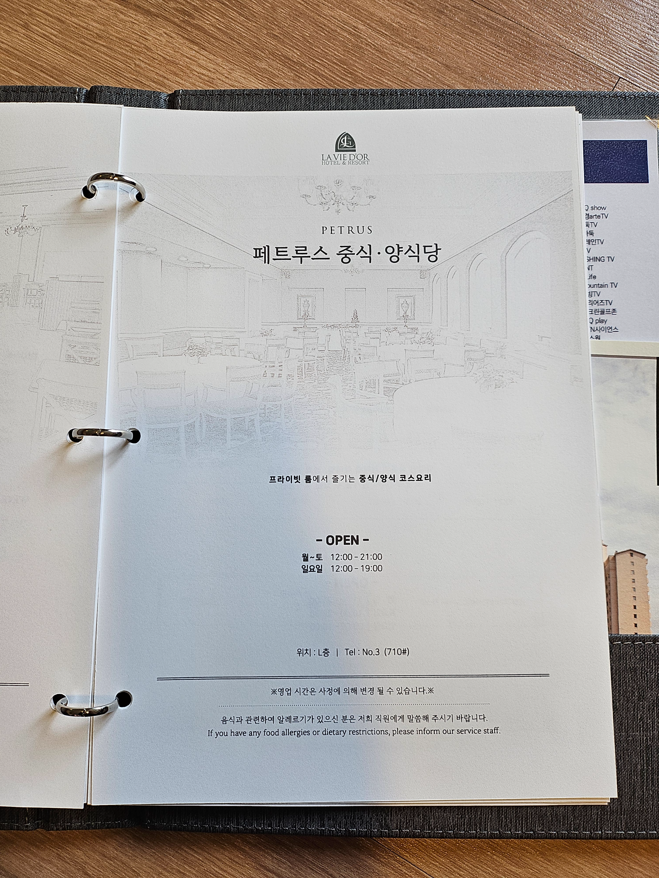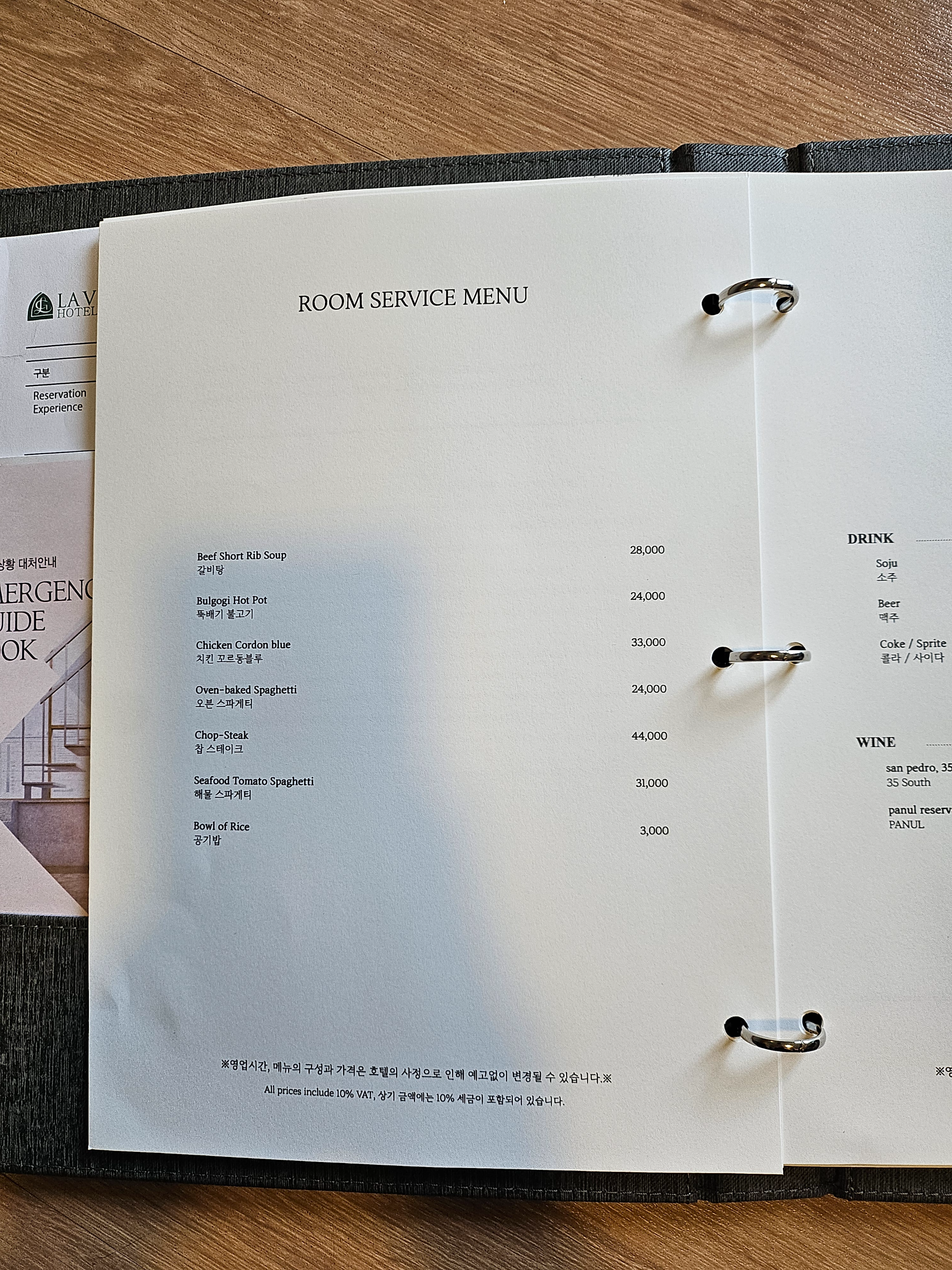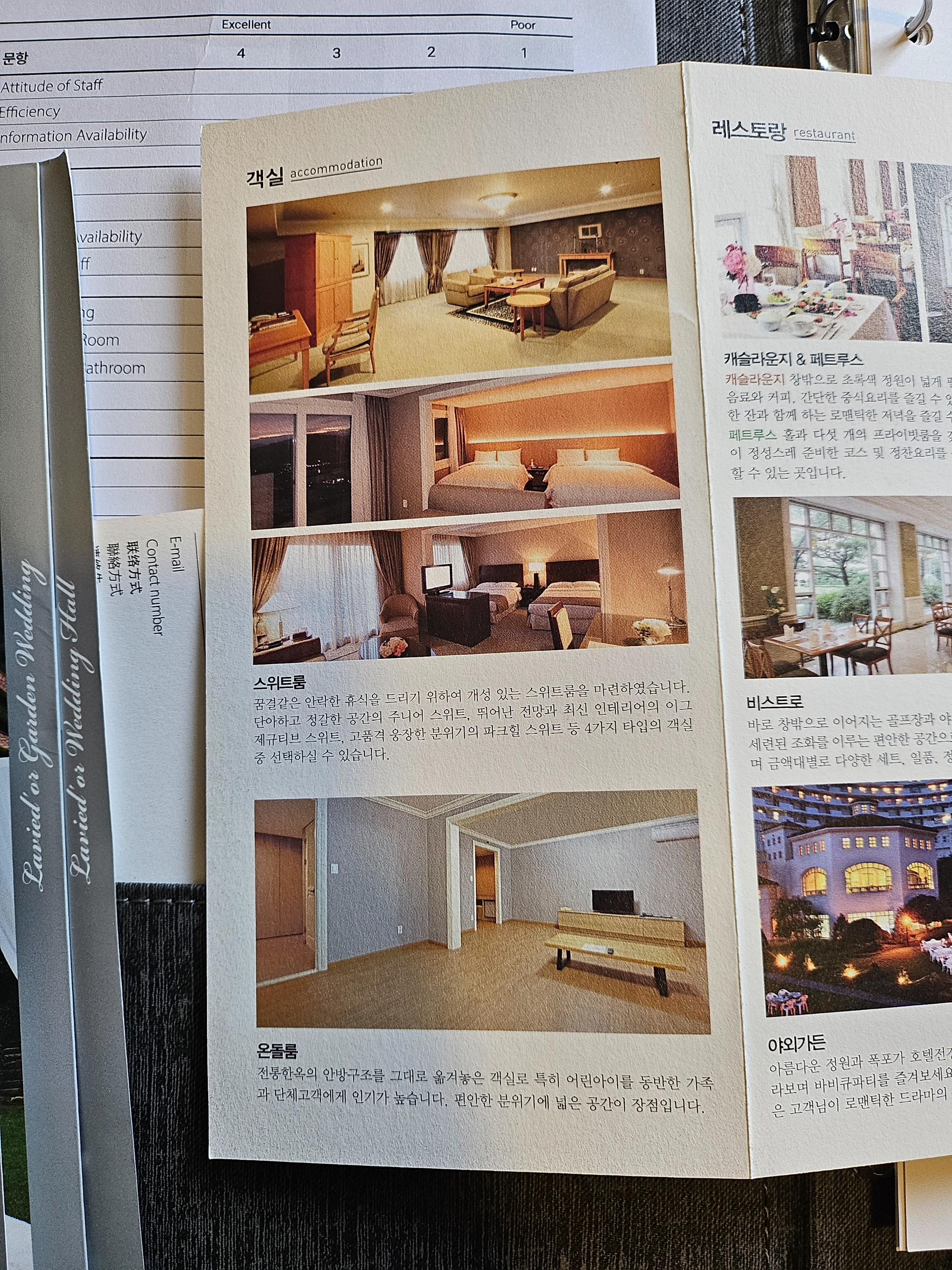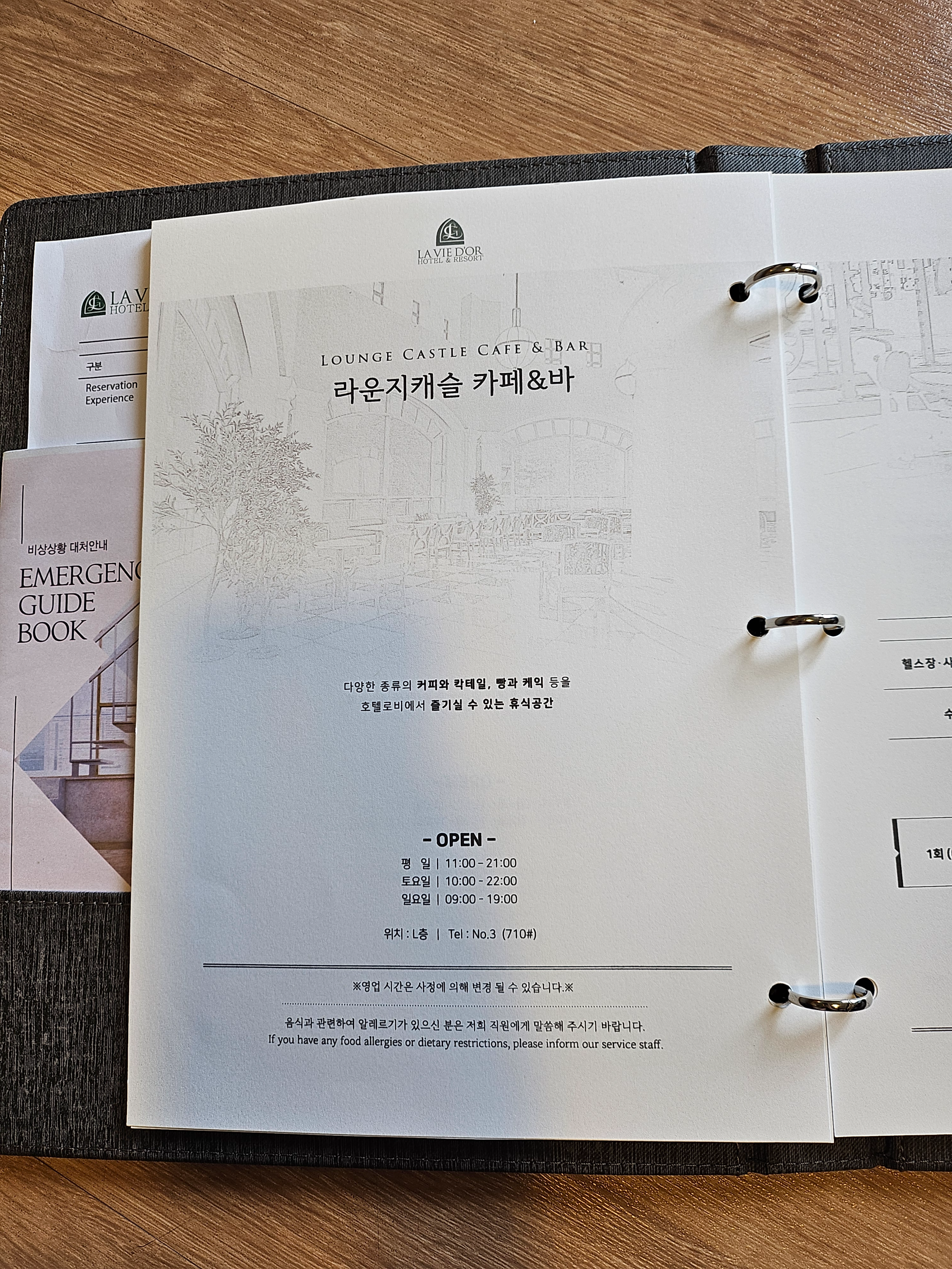 호텔의 이용사항과 부대시설 이용안내등이 적혀 있으니