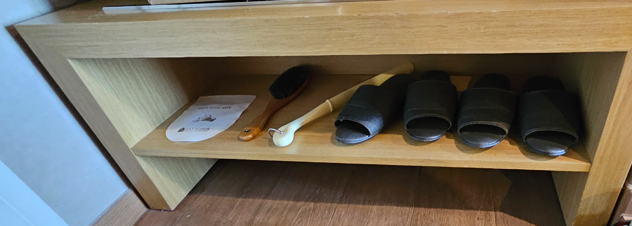 입구에는 작은 신발장과 선반, 슬리퍼 등도 비치되어 있어