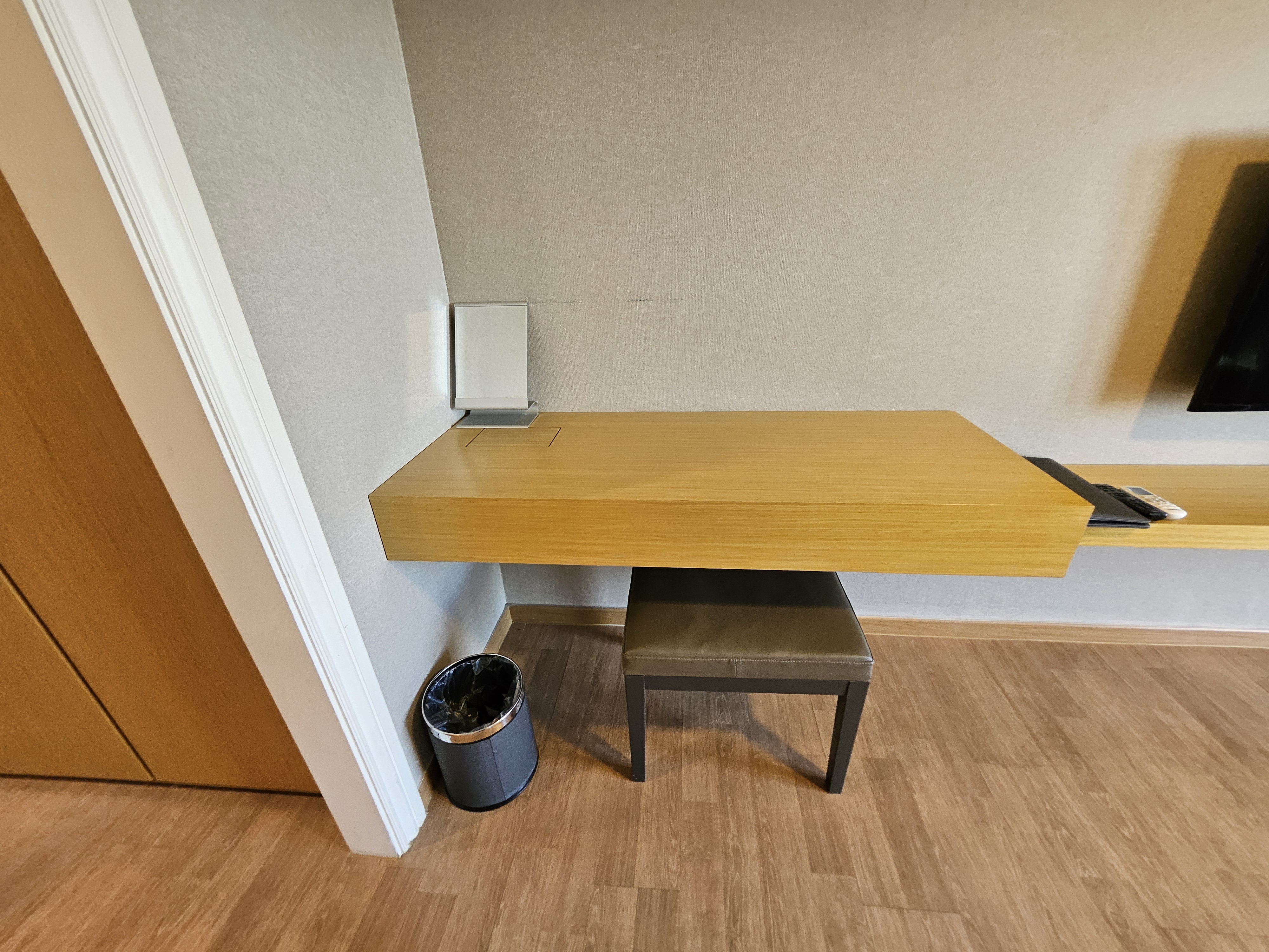 옆으로는 화장대나 책상으로도 쓸 수 있는 테이블과 의자,