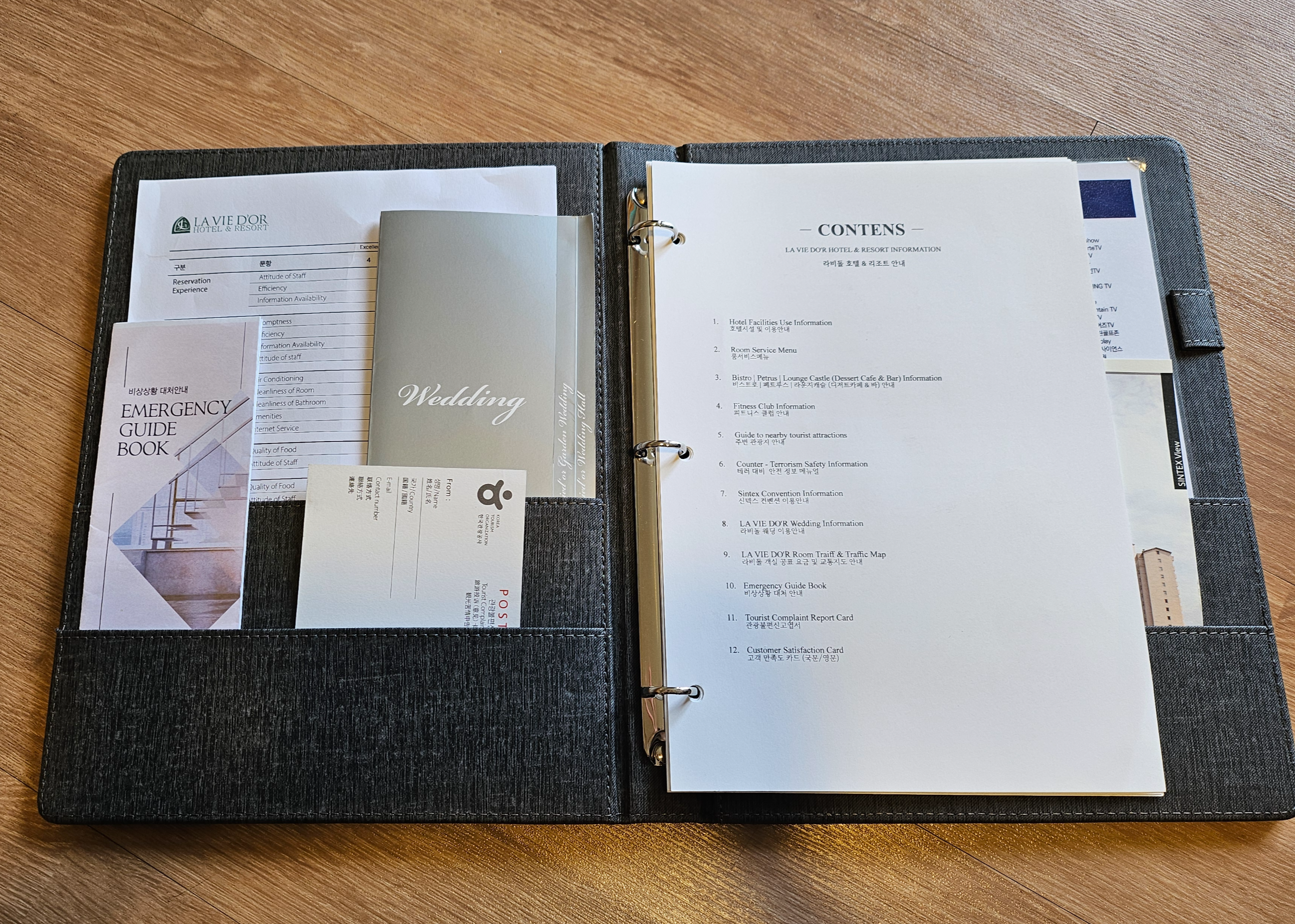 호텔의 이용사항과 부대시설 이용안내등이 적혀 있으니