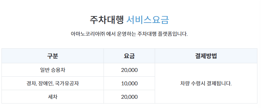 주차대행 서비스 요금은 발레파킹 요금이라고 생각하시면 되고