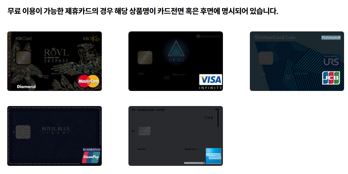 아래 제휴카드가 있다면 무료로 이용이 가능합니다.