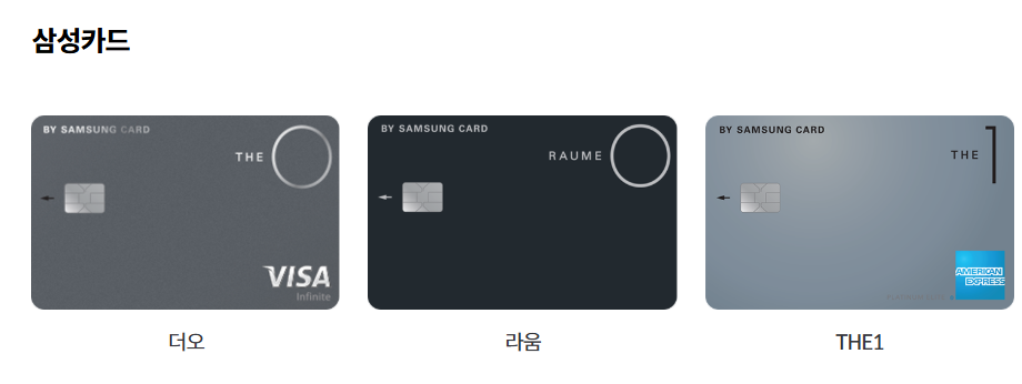 더 오 카드, 라움카드, THE 1 카드입니다.