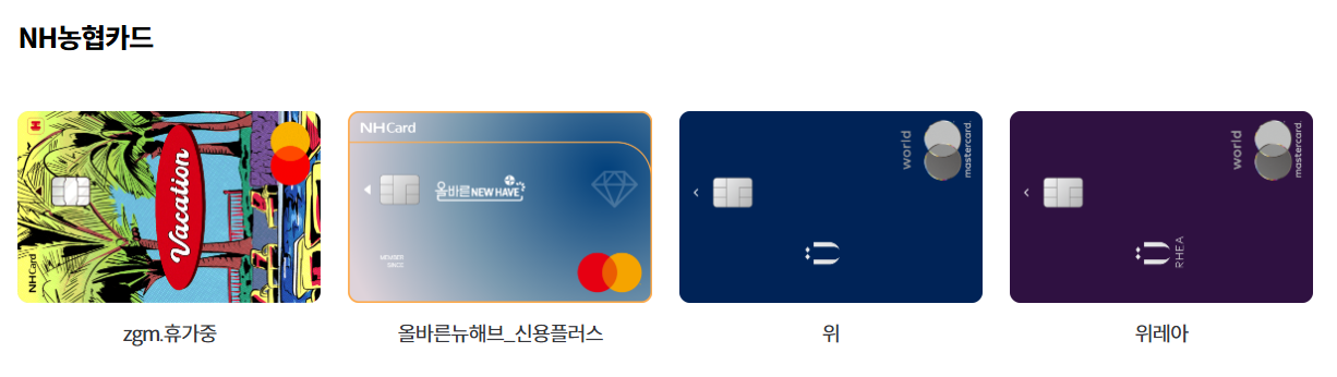 zgm휴가중 카드, 올바른 뉴해브 신용플러스카드, 위카드, 위레아 카드입니다.