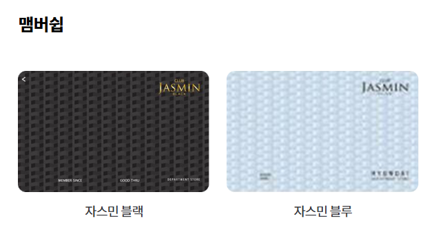 멤버십카드는 자스민 블랙카드, 자스민 블루카드입니다.