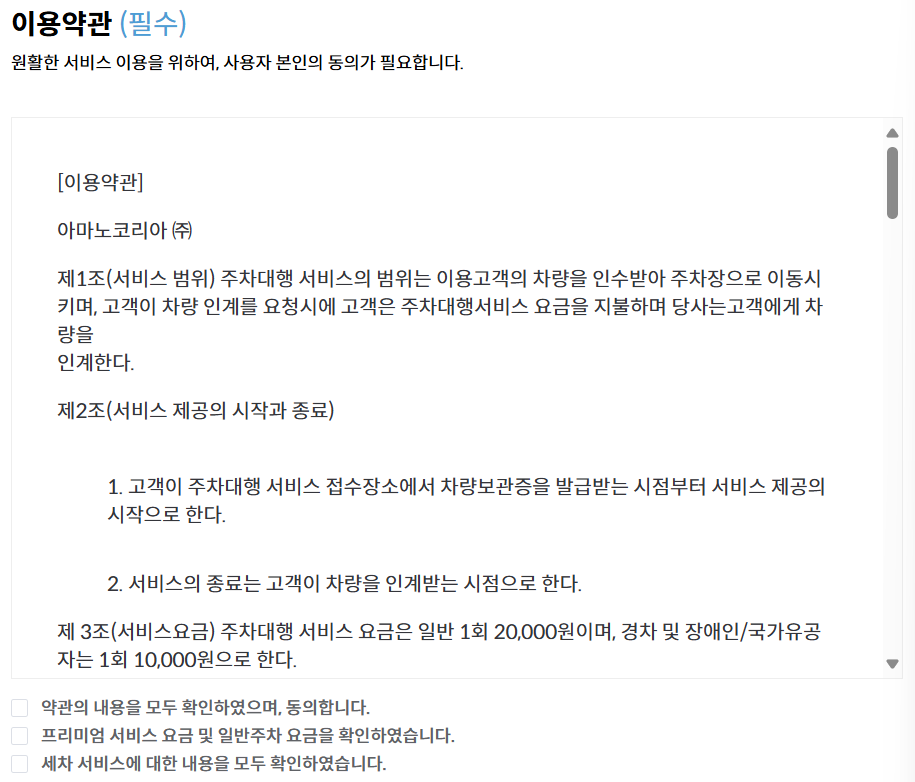 주차대행 서비스 요금은 주차요금과 별도로 결제하여야 합니다.