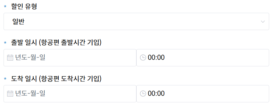 차량 도착 예상시간이 아닌 항공편 출, 도착시간을 기입하셔야 합니다.