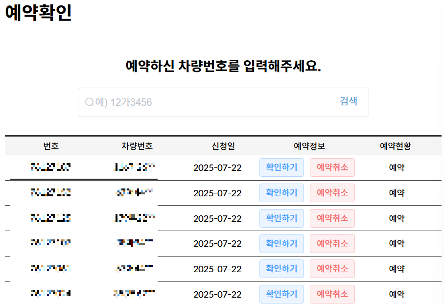예약한 차량번호와 휴대폰번호를 넣으시면