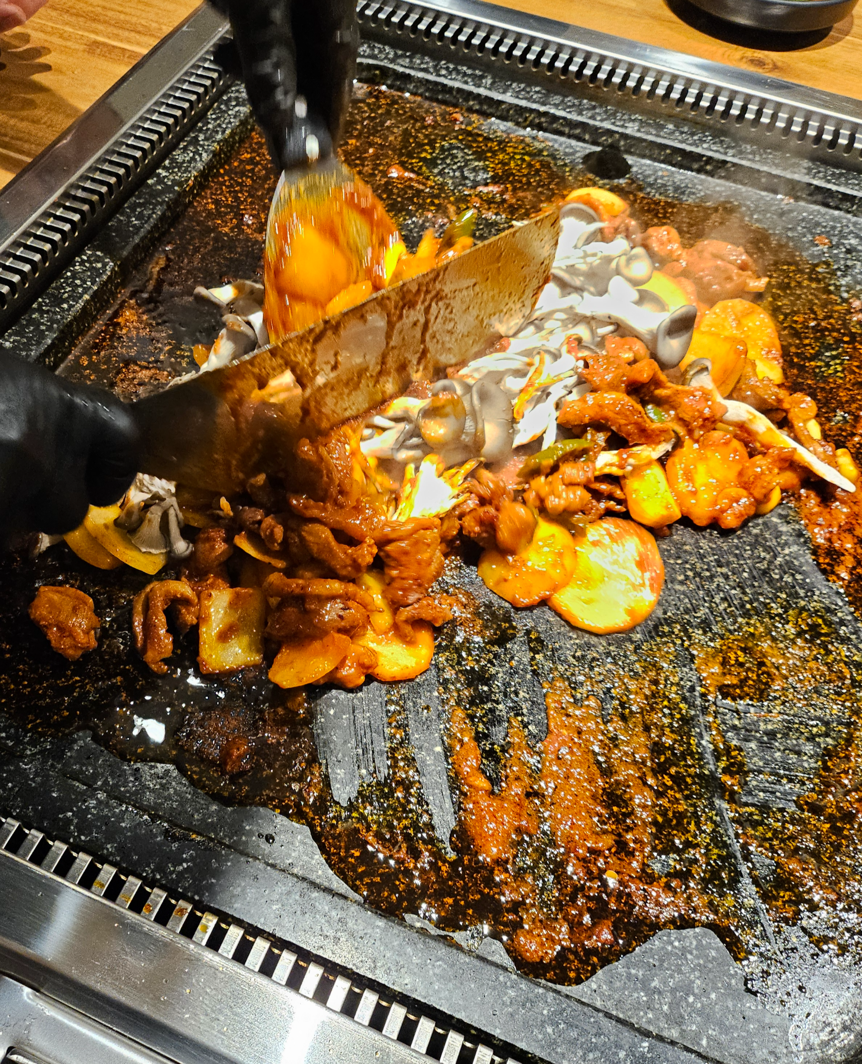 불판도 크고! 뒤집개도 커서! 자리도 넉넉하고 뒤집는 맛이 납니다.