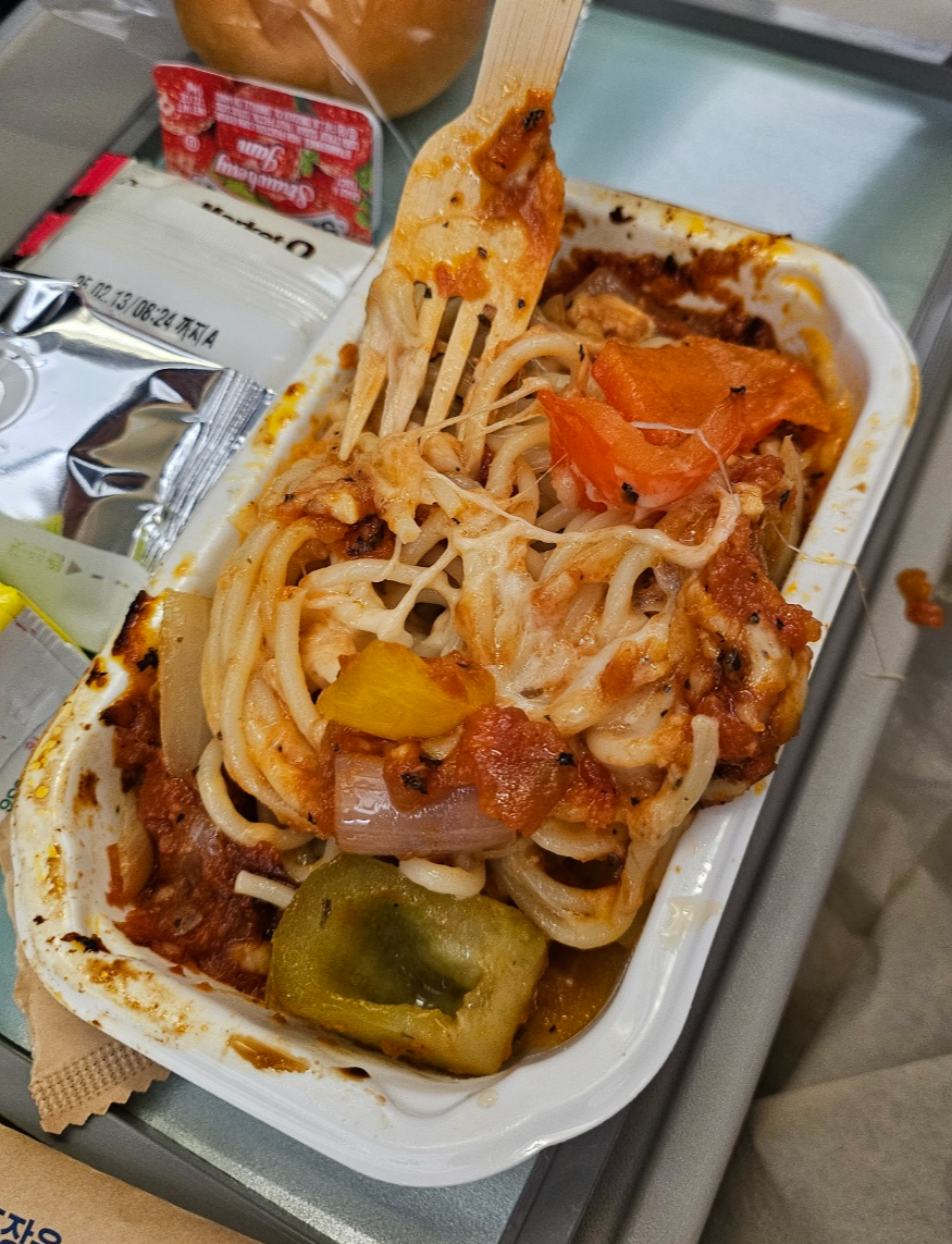 기내식은 항상 파게티로 정해져 있을 정도입니다.