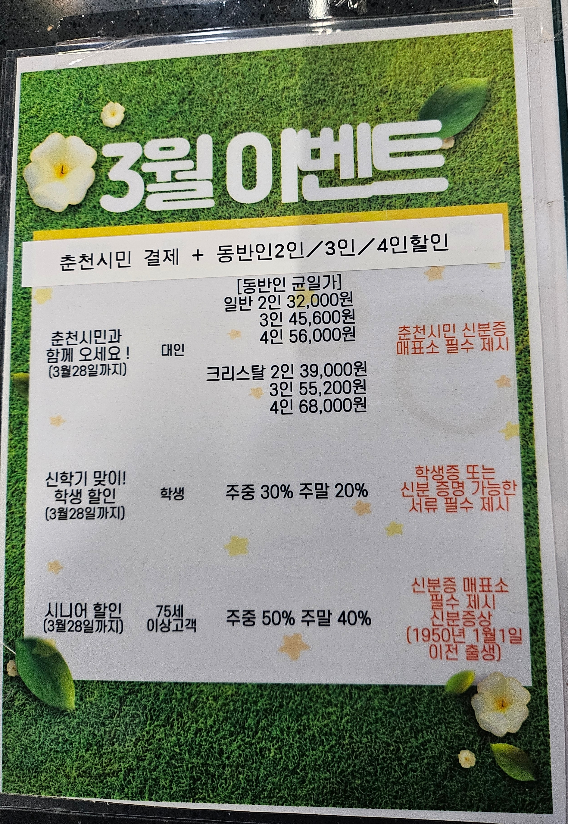 춘천시민 1인 결제 시 동반 고객 2인~4인까지 균일가로 혜택적용!