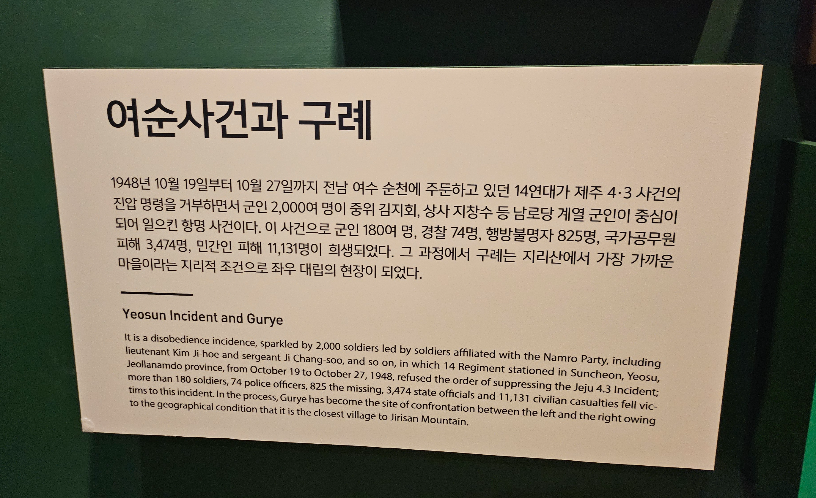 특히 여순사건의 경우 지금 지리산 역사문화관이 위치한