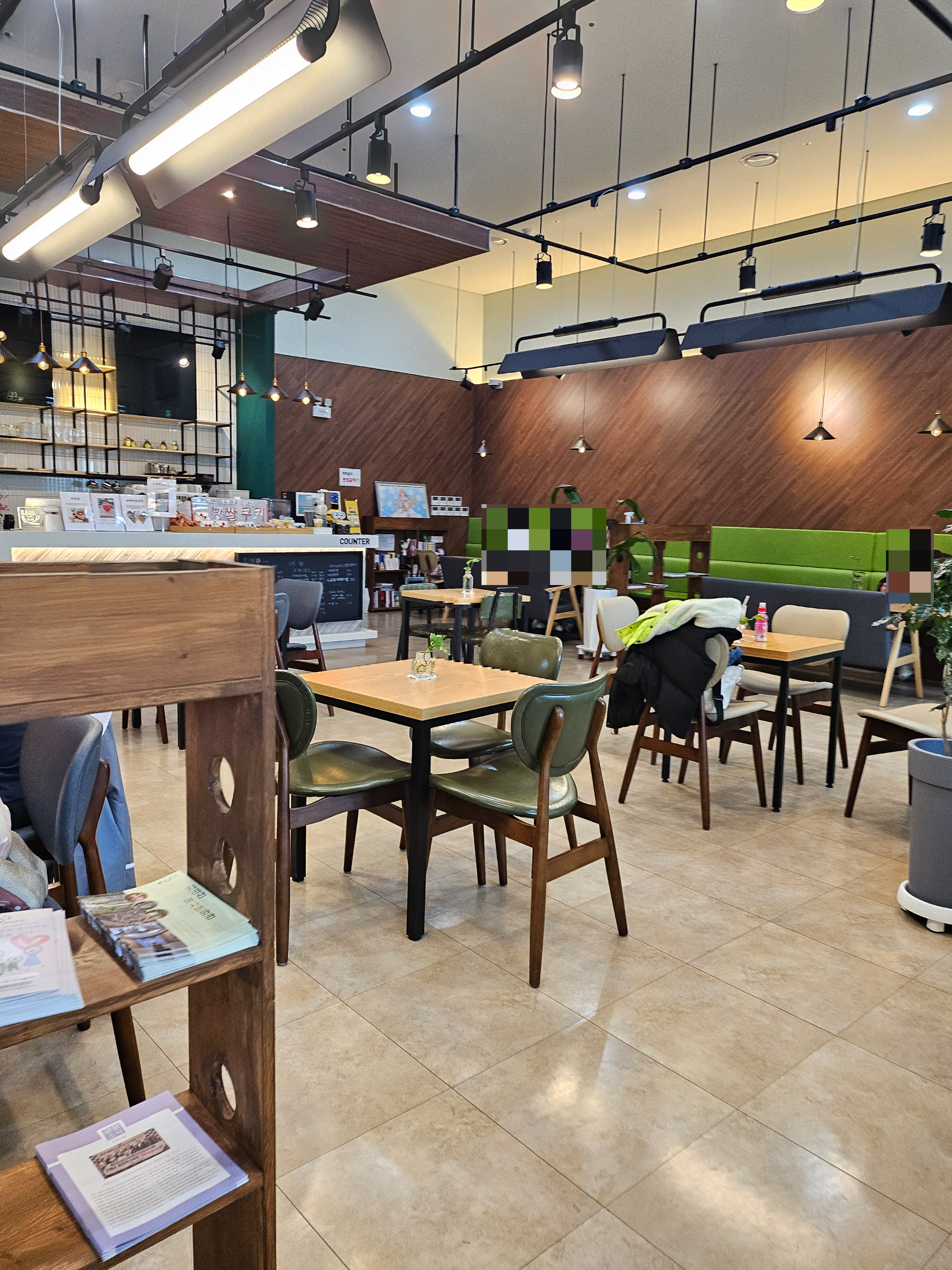 커피뿐 아니라 다양한 음료와 쿠키, 빵 등을 판매하고 있습니다.