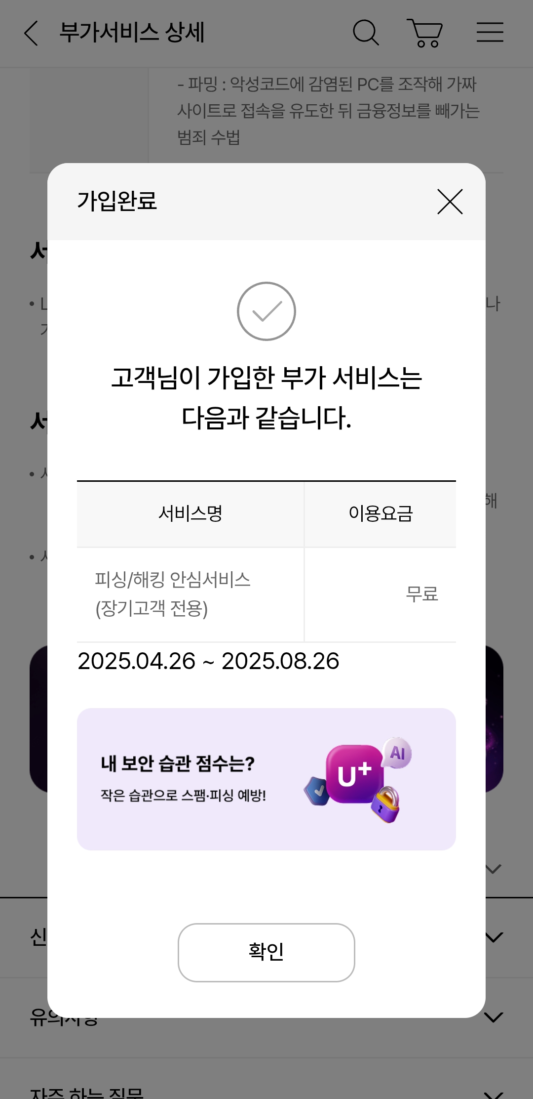 엘지 유플러스(LG U+) 피싱/해킹 안심서비스 해지하고 싶다면?