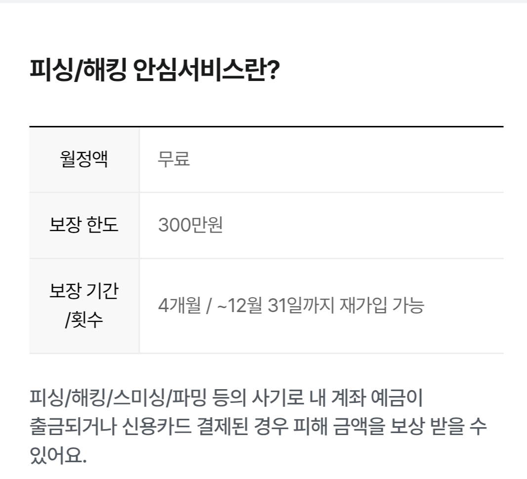 무료로 피싱 피해를 보장해 주는