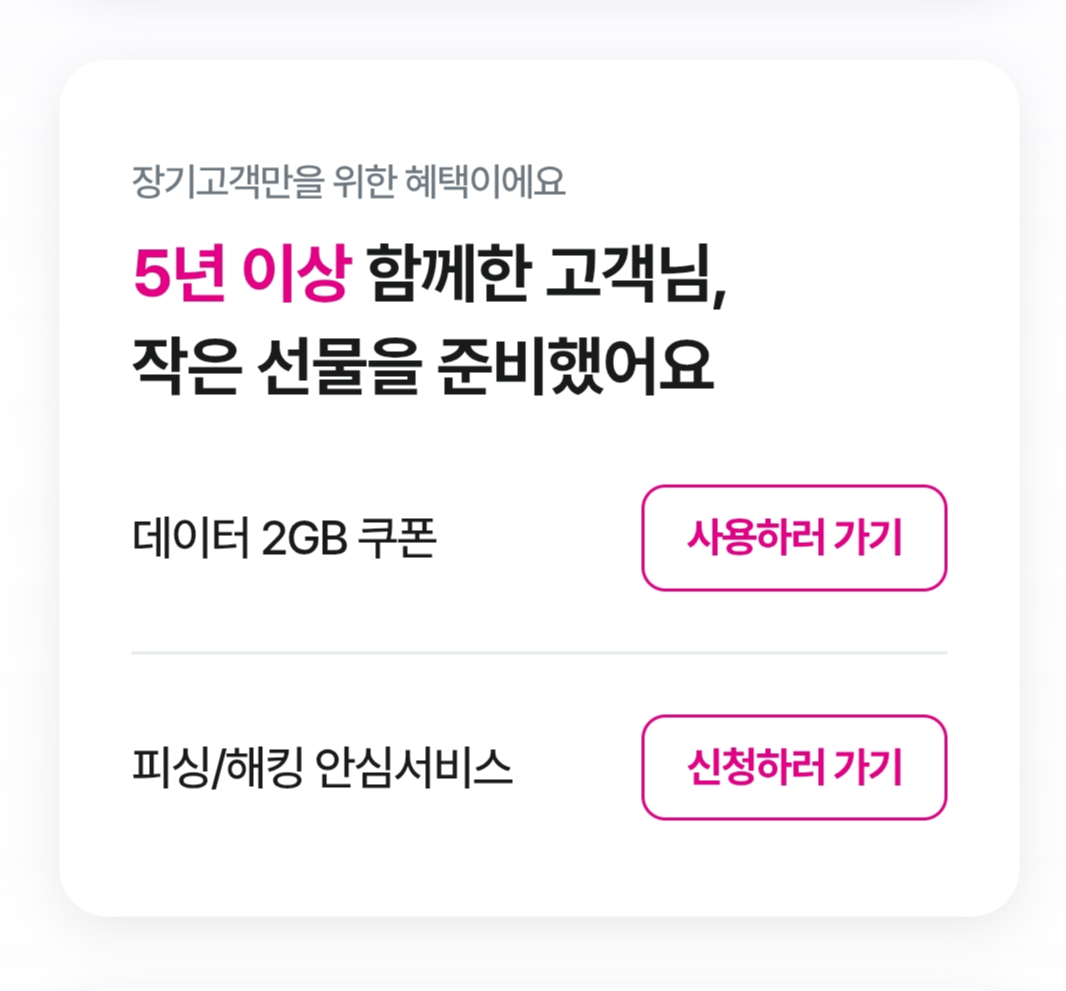 며칠 전 엘지 유플러스(LG U+)에서 2년 이상 장기고객에게