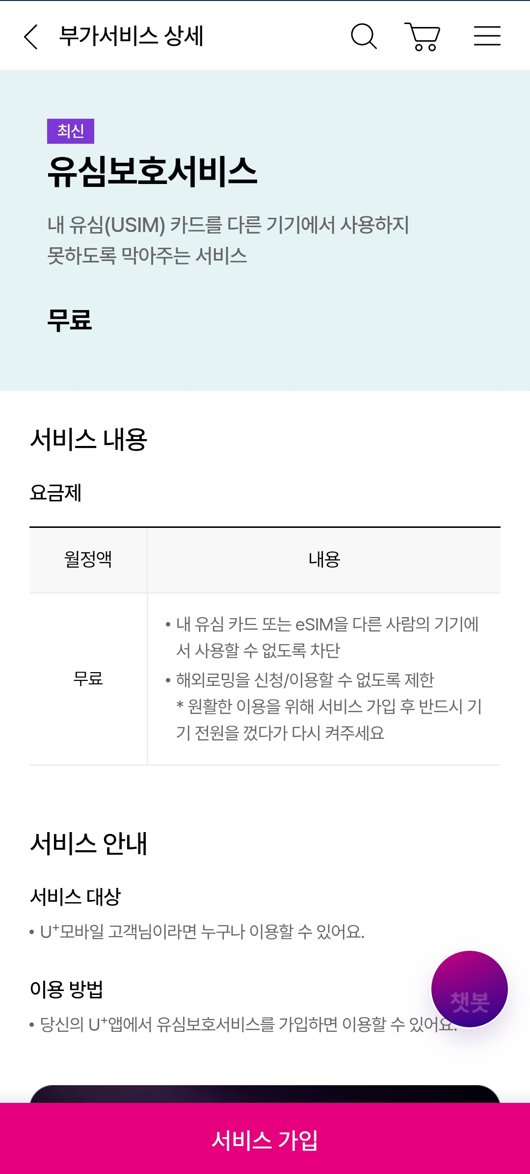 엘지 유플러스(LG U+) 유심보호서비스 해지방법은?