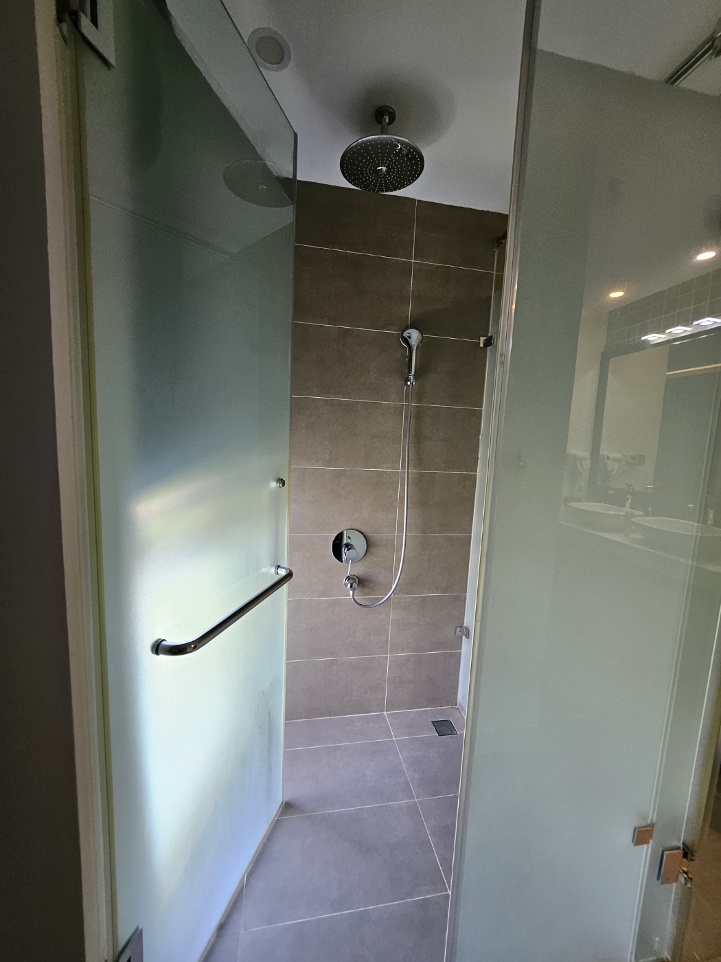 바로 연결된 주방쪽에 화장실이 있습니다. 수영 중 화장실을 가려면 외부 화장실을 찾거나 집안으로 들어오면 가는 길마다 물이 떨어져 처리하기가 힘든데 수영장에서 다른 방까지 갈 필요 없이 바로 연결된 거실 겸 주방으로 들어가 화장실을 이용할 수 있으니 참 편리했습니다.