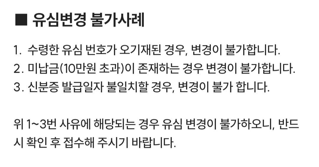 미성년자의 경우 고객센터를 통해서만 교체가 가능합니다.