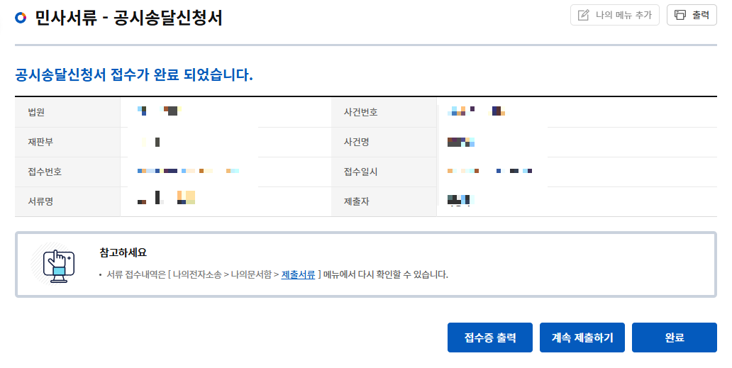 이렇게 되면 공시송달 신청이 완료되게 됩니다.