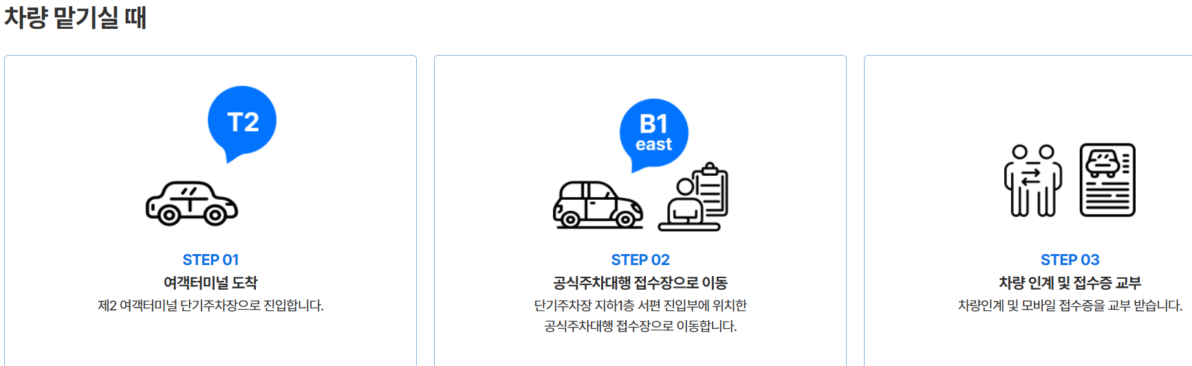 기사님이 장기주차장이나 외곽주차장에 대신 주차해 주고 귀국 시 다시 인도해 줍니다.