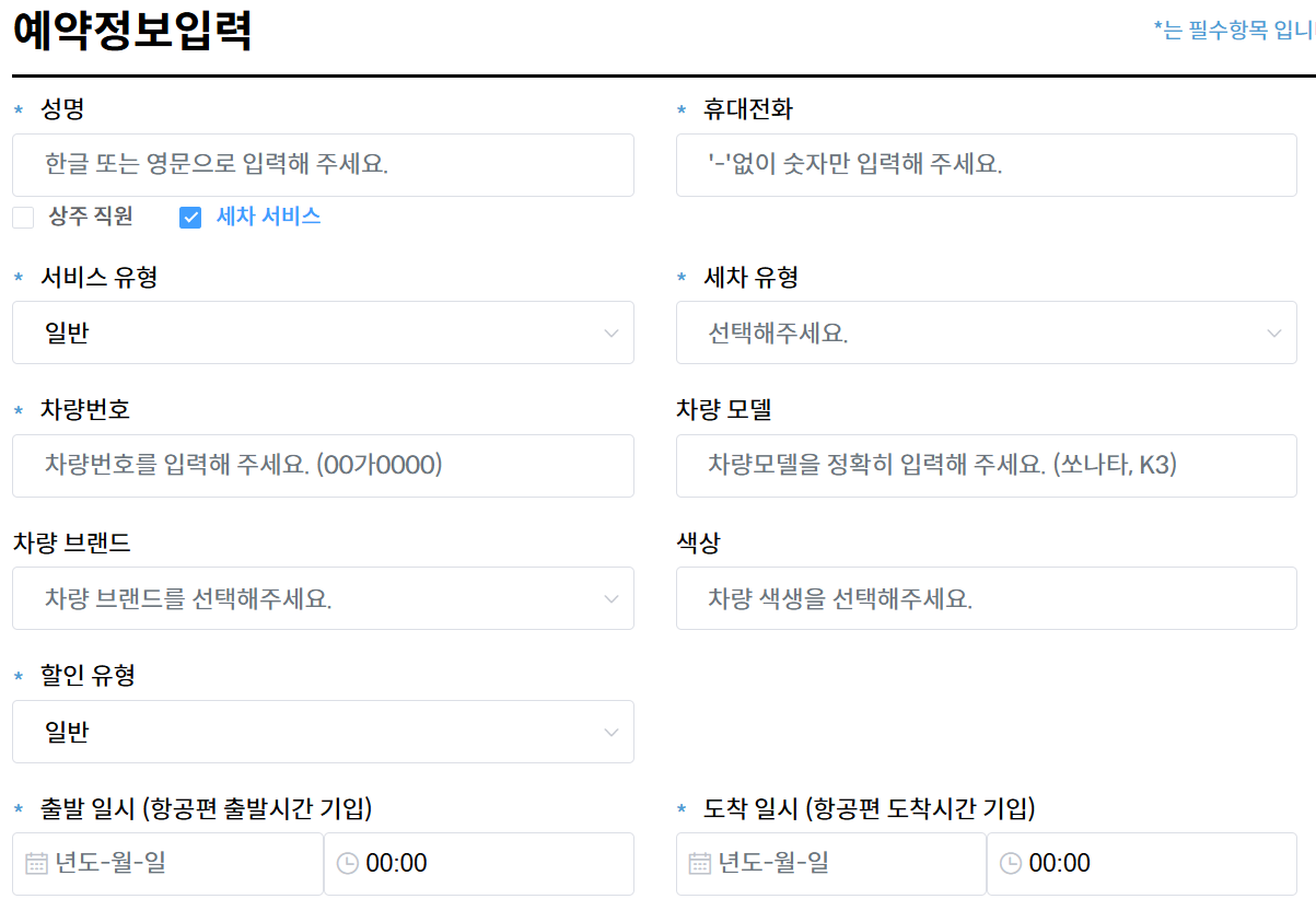차량 도착 예상시간이 아닌 항공편 출, 도착시간을 기입하셔야 합니다.