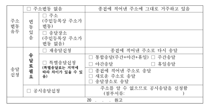 지금까지는 주소 변동 유무에 주소변동 없음에 체크하고