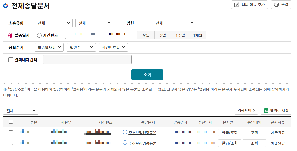 공시송달 신청은 주소보정신청과 똑같아 신청이 어렵진 않았습니다.