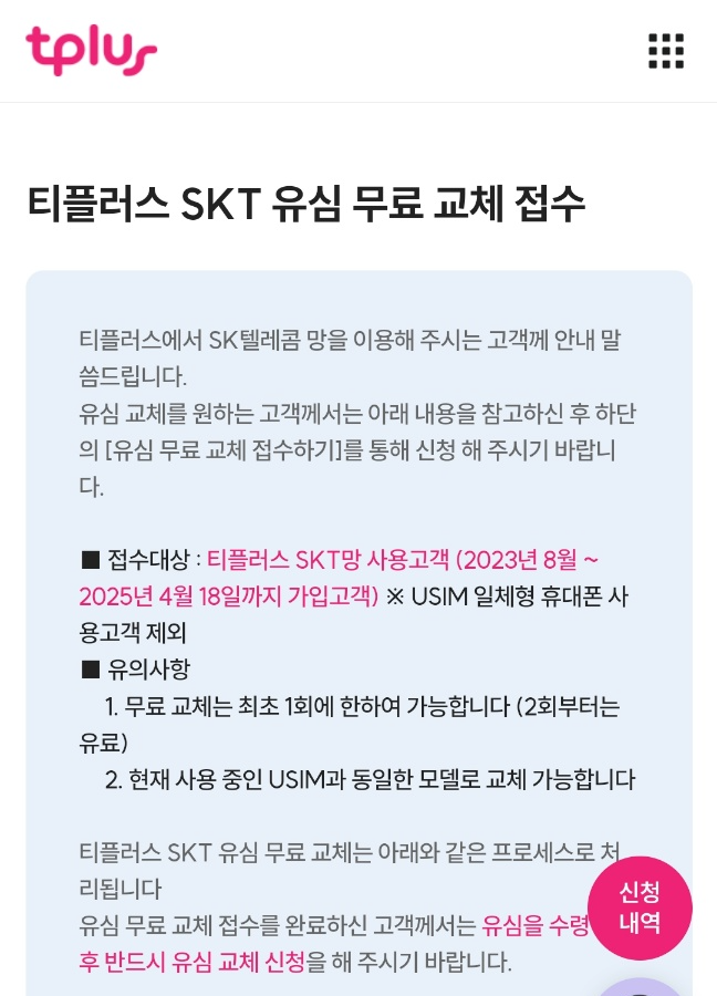 tplus 티플러스 유심 무료 교체 및 유심보호서비스 가입하기!